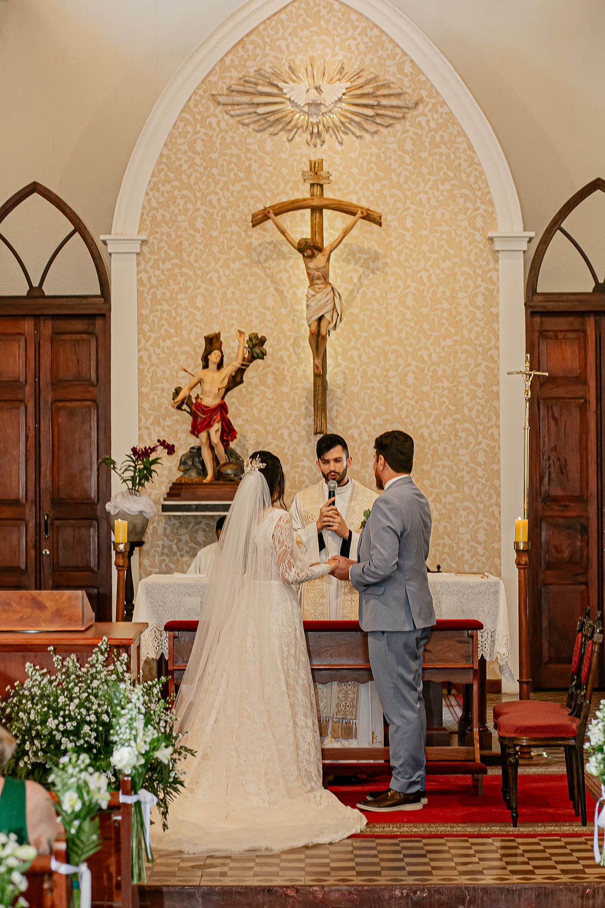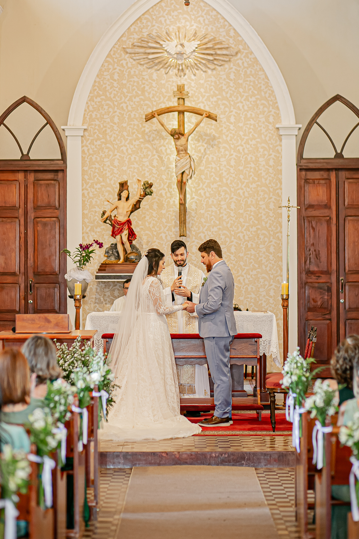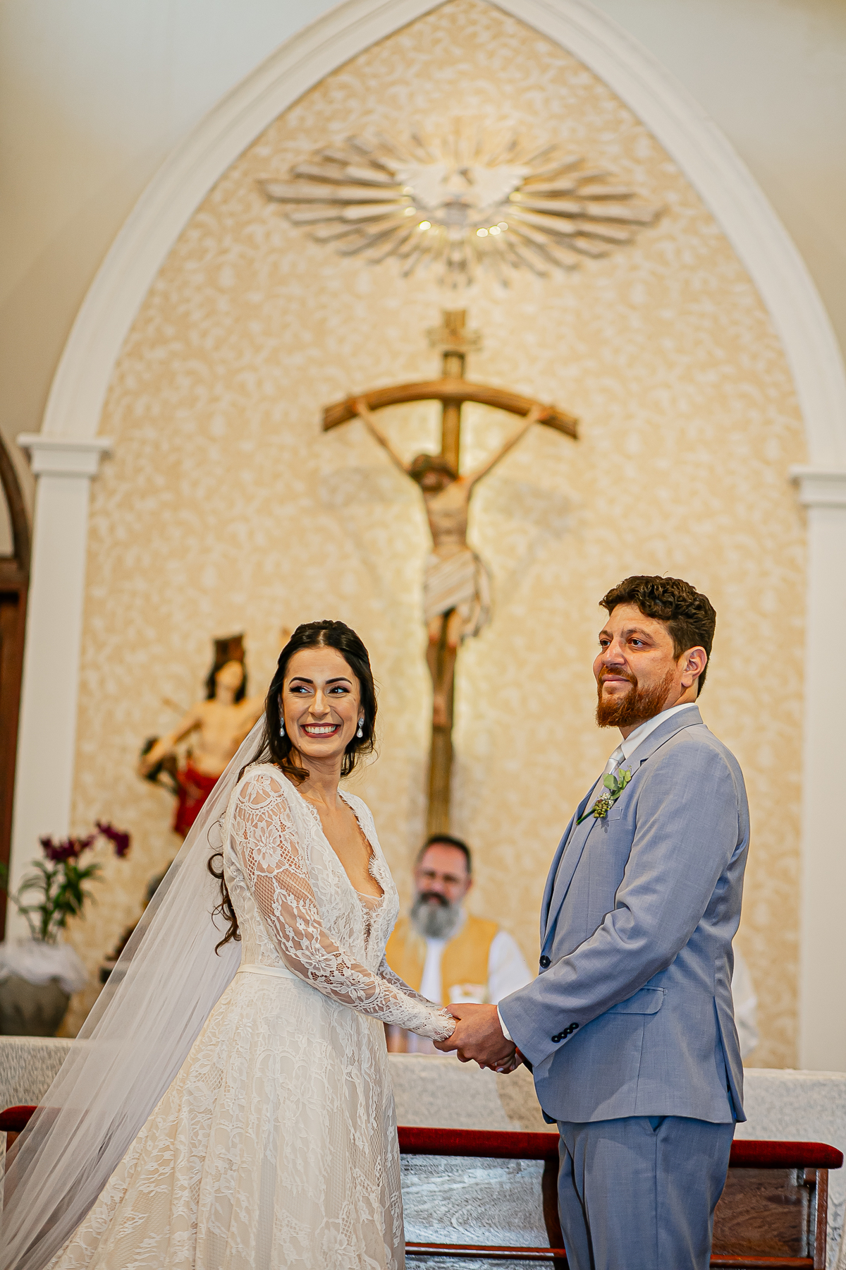 Já fotografei muitos casais, mais a sintonia e a emoção impregnada, a energia, a entrega desses queridos foi muito intensa, todos os convidados e amigos felizes, se divertindo com o casal, uma cerimônia lindíssima e emocionante realizada na Matriz de São Sebastião Centenária.
